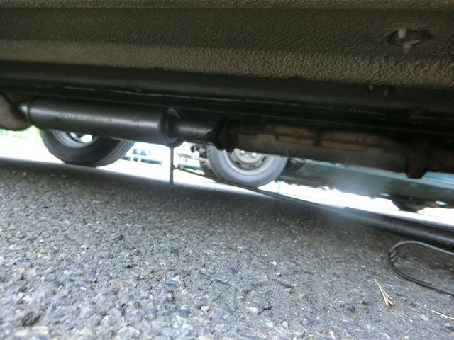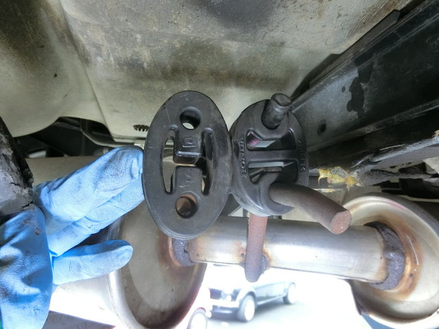 マフラーを上げれば何とか車検クリア出来そうなので吊りゴムを短くしてみます。