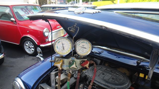 SZK様のタヒチブルーのMINIはエアコンが効かないとのことでご来店