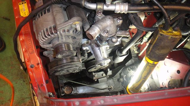 ウォーターポンプを取り付けたところで、ラジエター交換のお返事を待ちます。