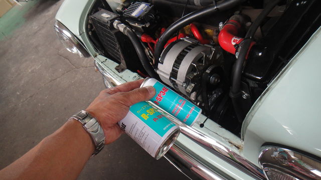 ピットの中は、R12のエアコンコンプレッサーの圧縮不良でクーラーが効かなかったMGR様の1000ccツインキャブが納車をまってました。