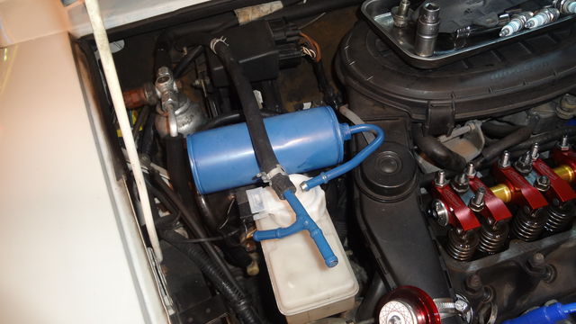 この青い缶は、まだ実用段階ではありませんが、左足ブレーキを多用したときのバキューム不足を補助するタンクです。(実用化できるかはもう少し先・・)