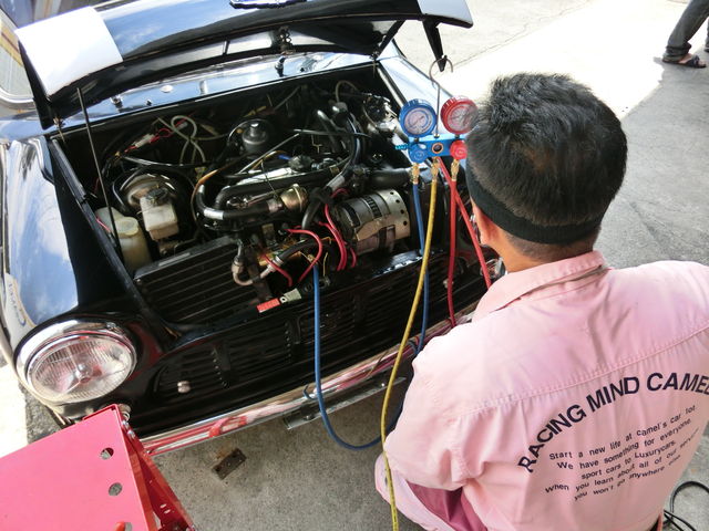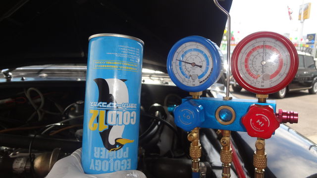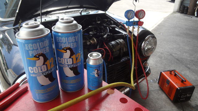 COLD12のガスと、R12専用コンプレッサーオイルを入れます。