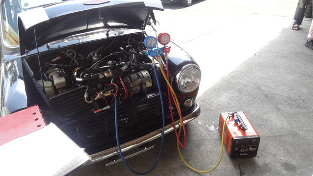 エアコンガスはR12仕様のモデルで、COLD12への全量入替えのご依頼です。