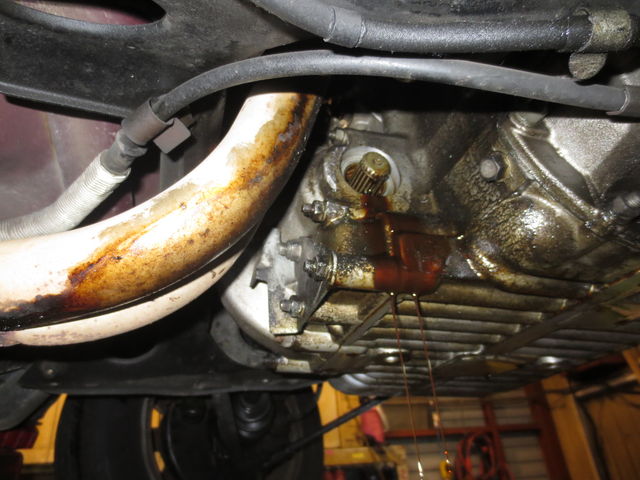 左のデフサイドシールと、その裏側のキックダウンスイッチからも漏れてるようですね。