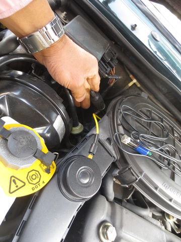 兄貴分のミニモニと同様に、エンジンルーム内の3ピンの診断コネクタに接続して