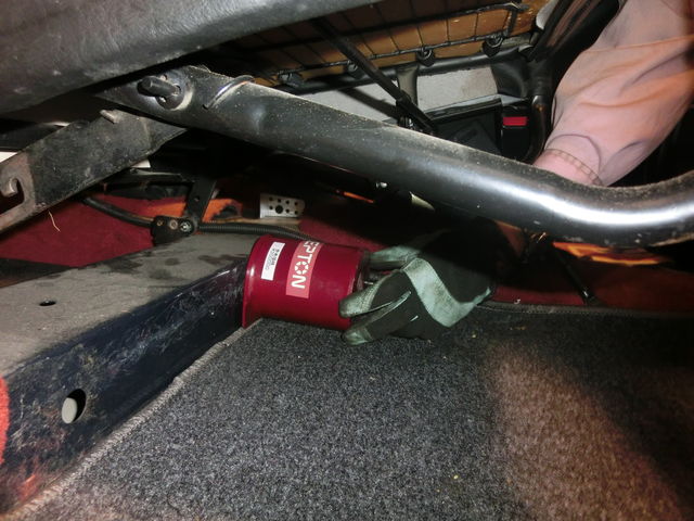 助手席のシートの下に強力磁石で取り付け。。