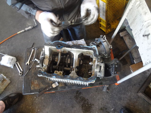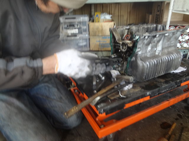 車体からエンジンを下し、エンジンとミッションを分割して、そしてやっと