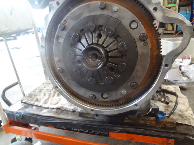 フライホイールとクラッチを組み付けます。