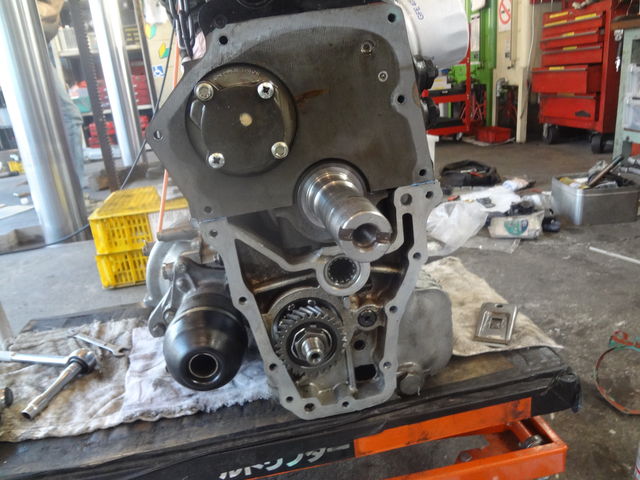 クランクから来た動力をカウンターギヤを介してトランスミッション側へ伝え