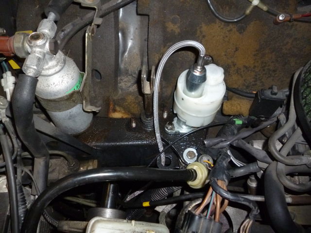 クラッチレリーズにアクセスするために、ブレーキマスターバックを外します。