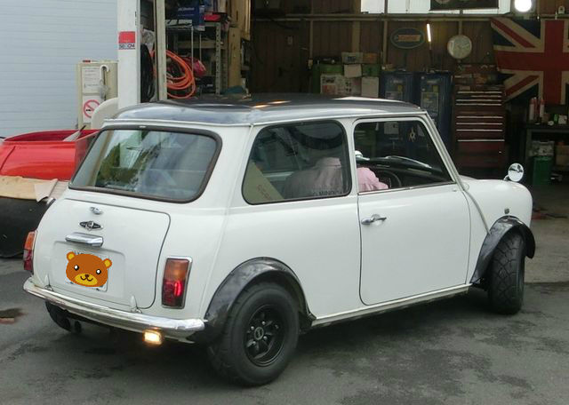 ミッションOH他でお預かり中のTDK様のミニですが、以前10インチキット(4ポット&ブレンボコンビ)を組んだ続きで自前で塗装済みのウルトラライトの10インチ&7Jオーバーフェンダーで中身だけでなく見た目もイケイケにしちゃいますヽ( ´ー`)ノ