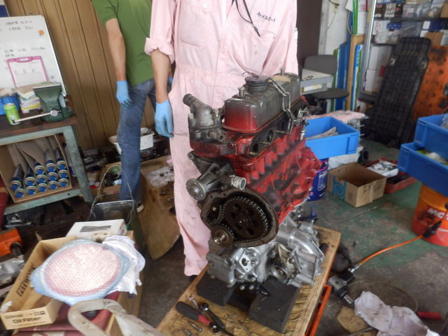 2カットで降ろした、エンジンとミッション一体です。早業っ。