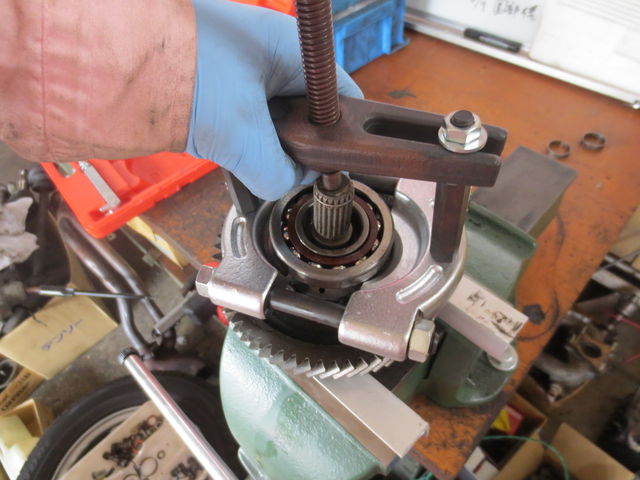 フライホイールハウジングのベアリングも交換します。