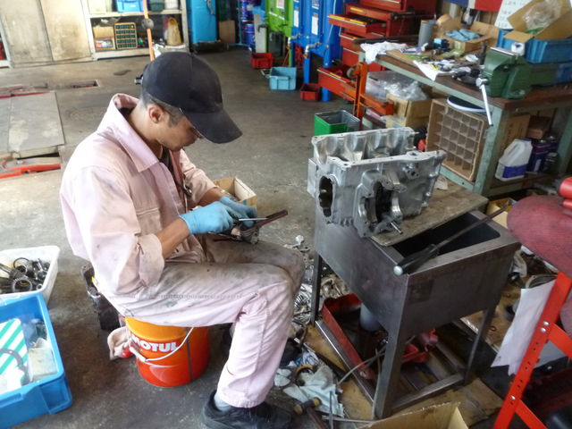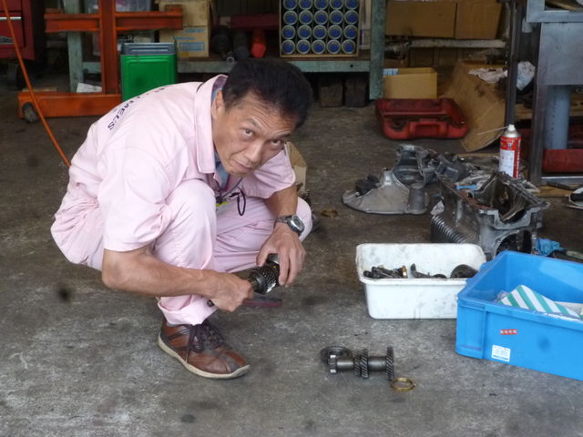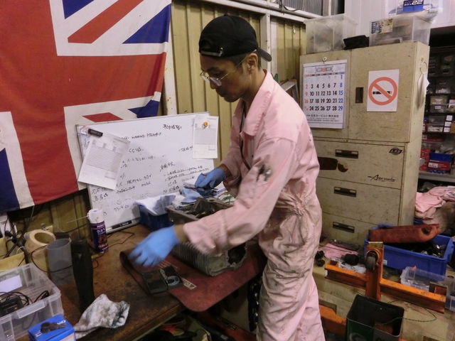 奥で、ミッションオーバーホール中の市川君が手際よく作業中でした。。