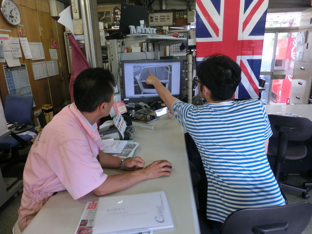 在庫車の写真を見て商談中です。。