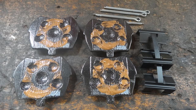 パッド交換。 鳴き止めシールにパッドグリスを塗って取り付けます。