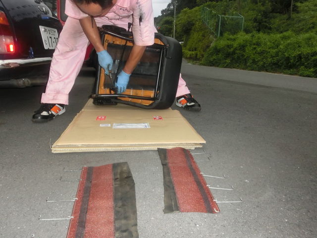 手前のが、切れてしまったシートクッション。