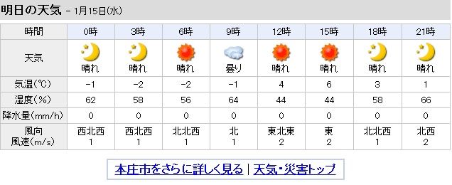 気になる明日の本庄周辺の天気は。。。