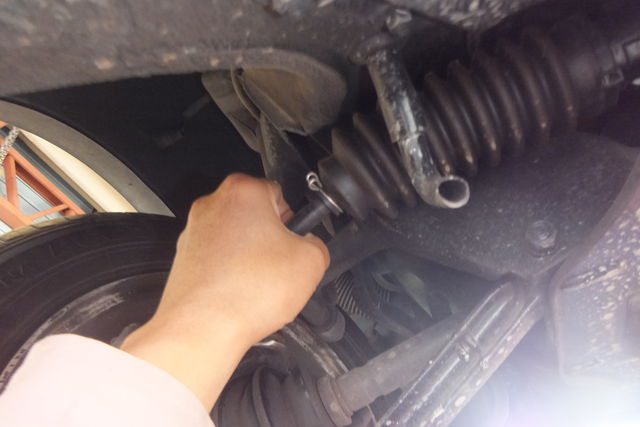 左のタイロッドにガタが出てます。。