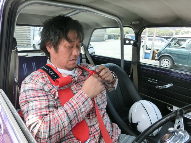 MTの練習がしたいと本庄サーキットのミラジーノを借りる矢野選手。
