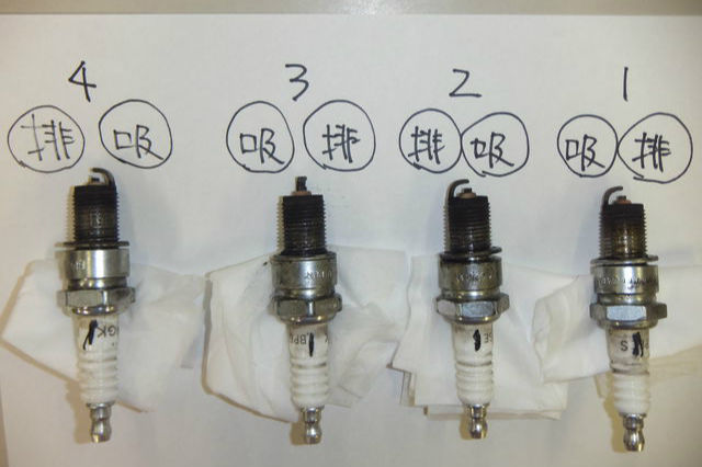 右側が1番プラグ、 吸気バルブ側に向いてます。