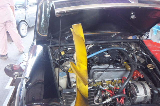 ラジエターがフェンダー側に固定できれば、もっとしっかりした囲いができるんでしょうが、MINIのラジエターはエンジン側に付いてるんで動くんですね。 だからゴム製。。