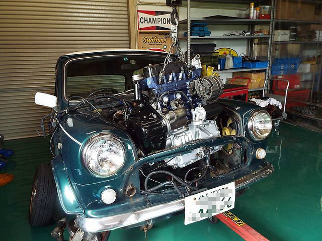 補機類も取り付けられて、テスト用のMINIに積まれます。
