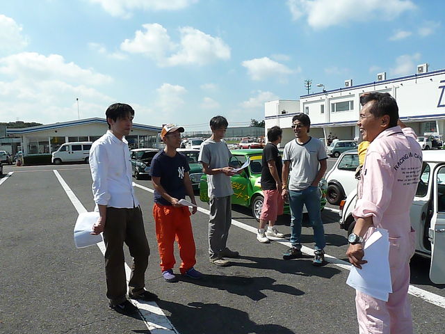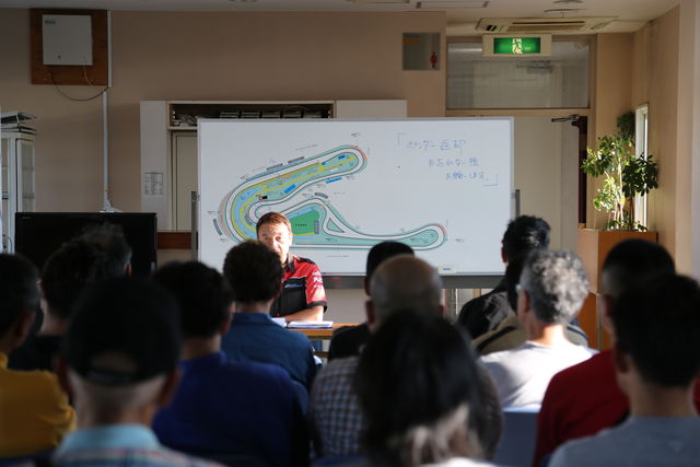 三和トレーディングの清水さんからスポーツ走行前のルールや注意の説明です。