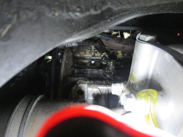 シフトレバーハウジングまでオイル汚れが伝ってあります。