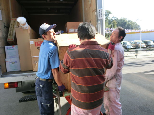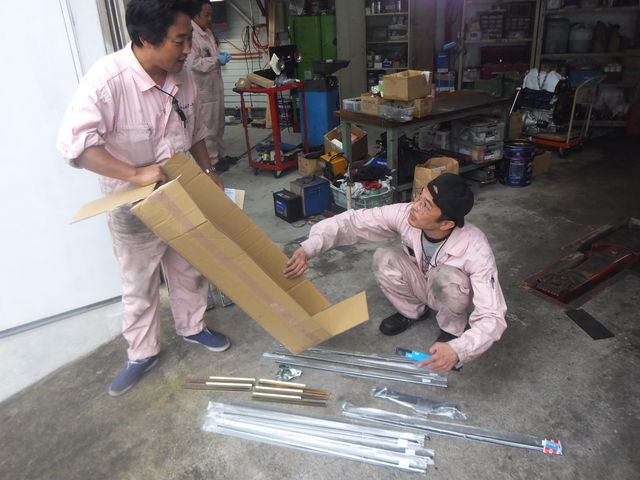 ヨイショっと。 ジャッキ台車に乗っけて受け取りです。