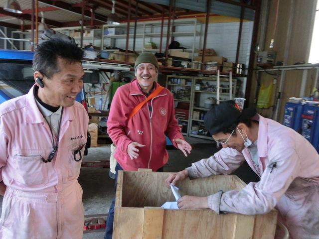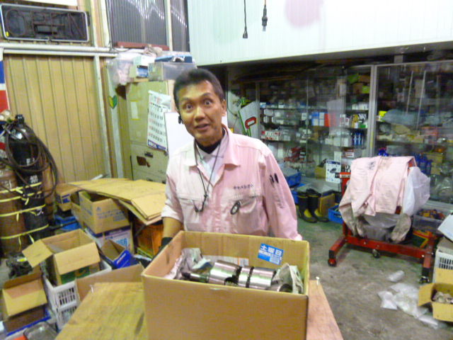 石川号のエンジンを引き取りに来た内燃機屋のタニマックさん。。