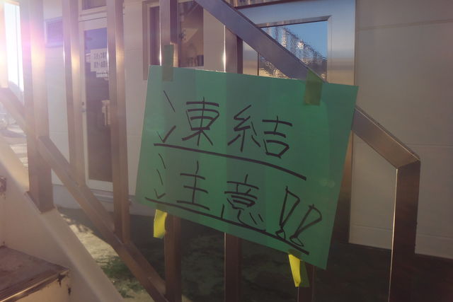 階段は完全に凍ってました。
