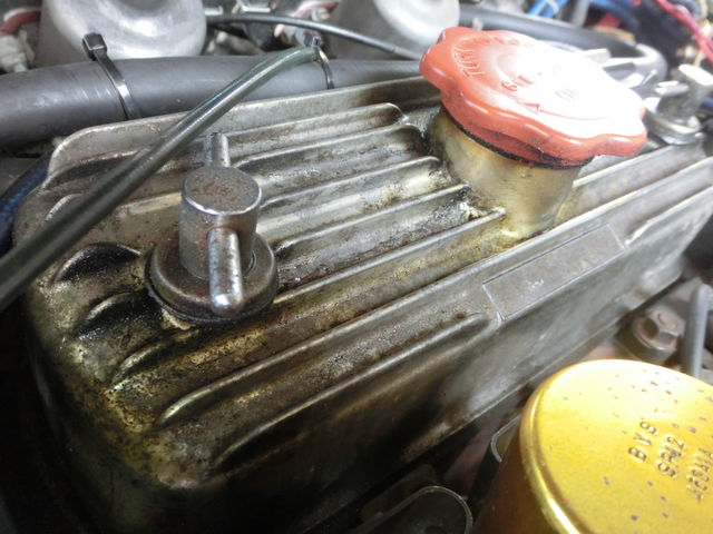 フィラーキャップとブッシュからオイルの滲みが若干多めですね。