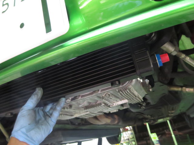 オートマ車の場合、オイルクーラーをどこの油圧ラインに割り込ませるかが問題。。