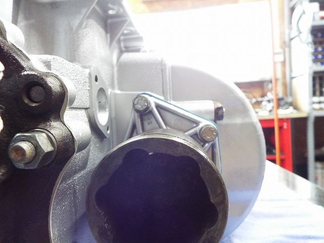 左ドライブシャフトの上の穴がキックダウンスイッチが取り付くところ。