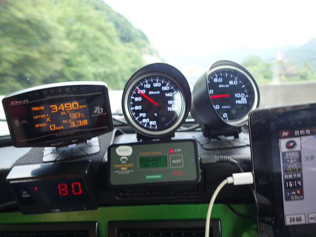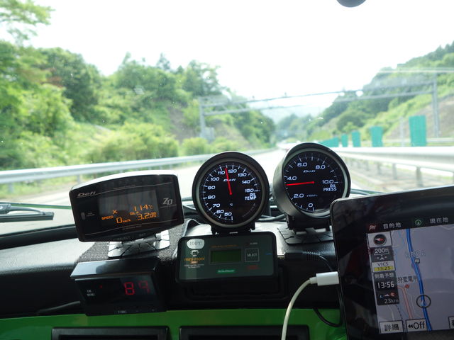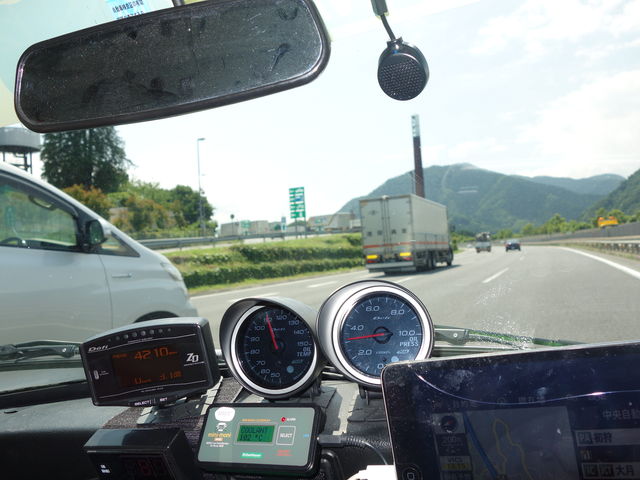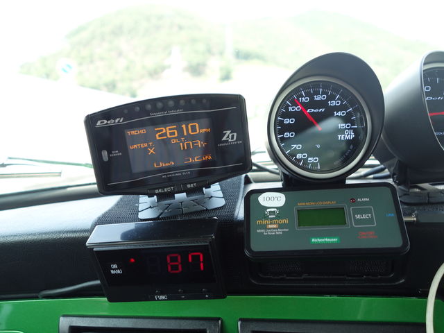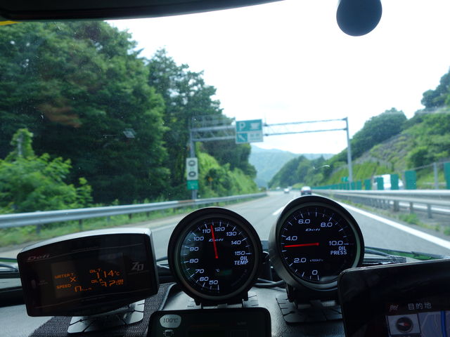 登り坂が続きエアコンつけて全開走行だとかなり負荷はきつい状態なので油温は上昇してます。