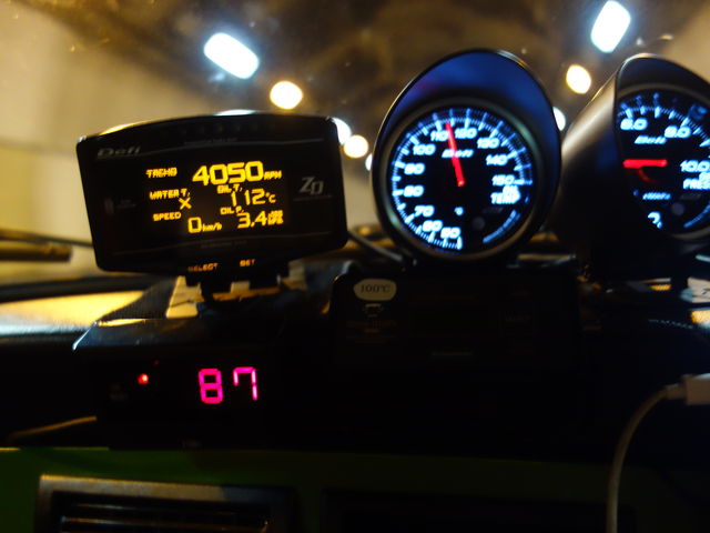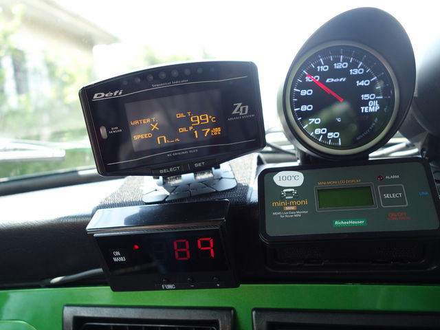 左下の73℃表示はオイルクーラーのサーモスイッチでオイルパンに貼りつけたセンサーで75℃になるとポンプが動き始めます。