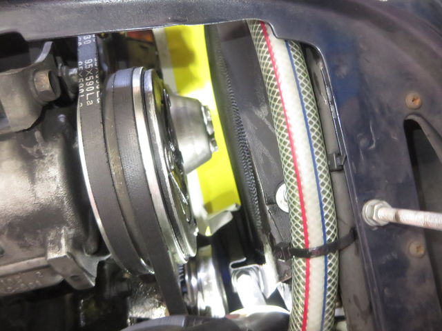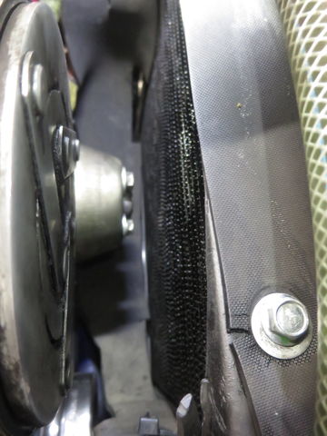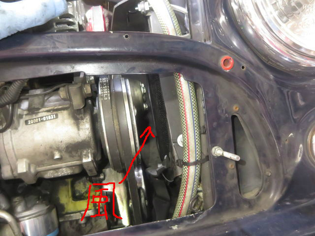 クーラーのコンプレッサーとラジエターシュラウドの僅かな隙間から風が入るのね。。