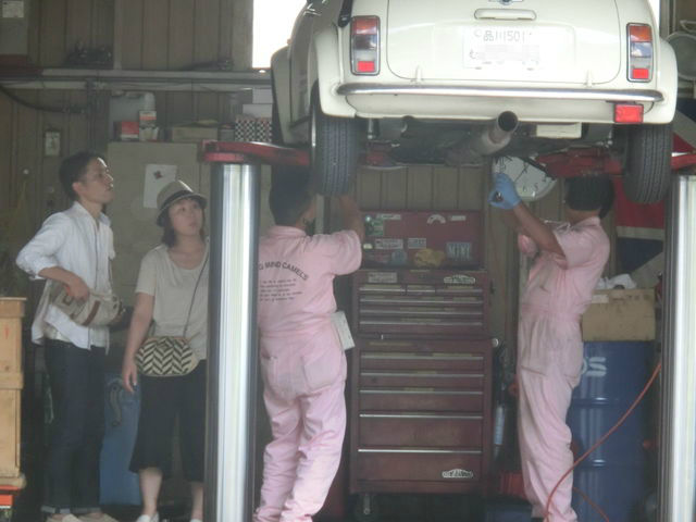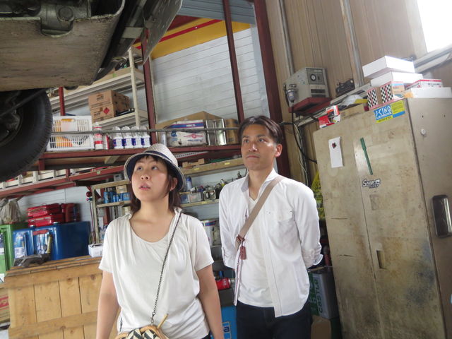 店内に入る前に、リフトアップして準備してあった、KWS様のBSCCを一緒に点検してもらいます。