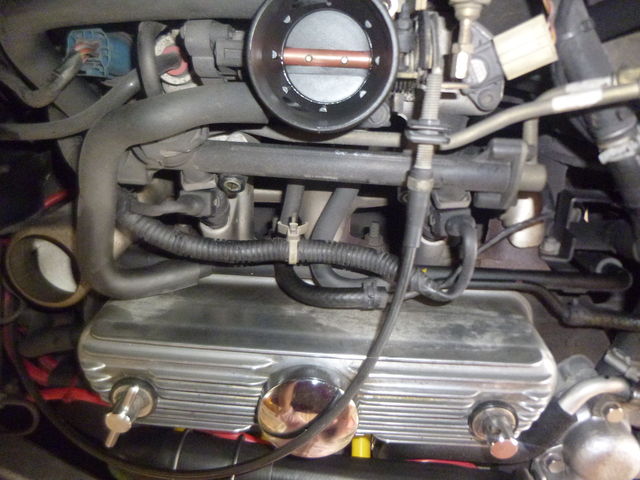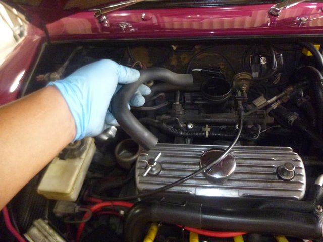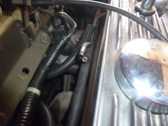 反対側のブローバイホースにも、ワンウェイバルブを取り付け。