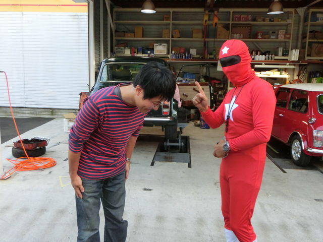 マスターの着ぐるみを着たミッションマンと、ダブルクラッチの講習に出発 !