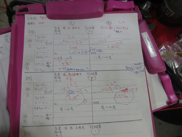 タイヤを左右に20度切った時のキャンバーを測定。