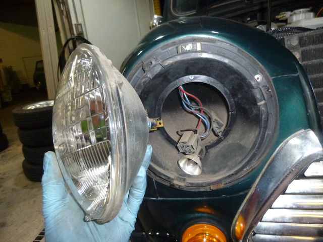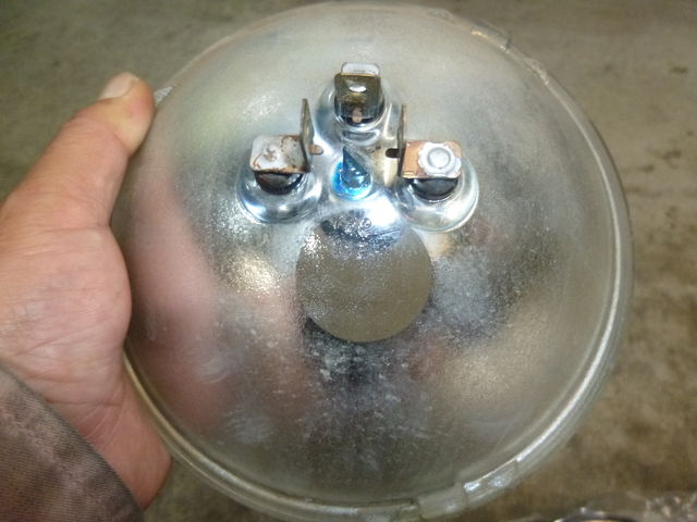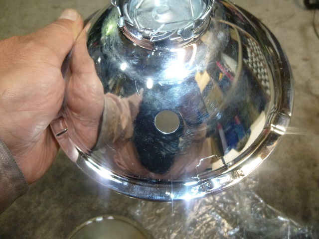 シールドビームは穴が無いので、外からライトの中を照らすように