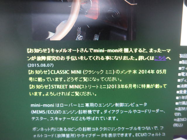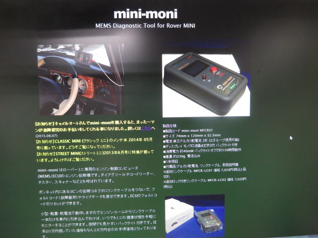 キャメルの整備シーンではお馴染みのECUチェッカーのmini-moni