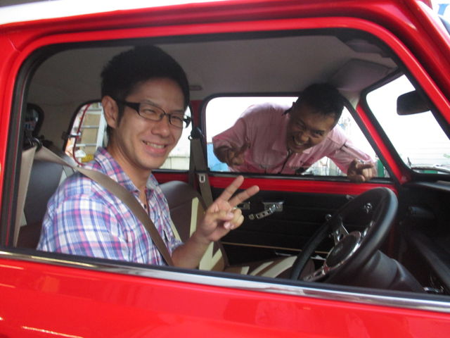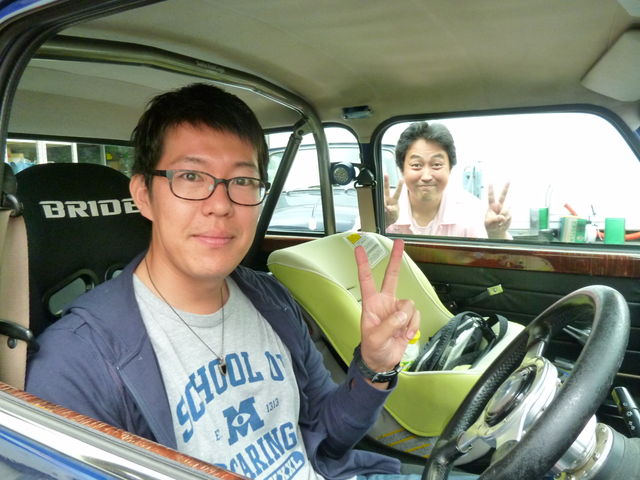 そんなときでもピースサインはミニ乗りのお約束??