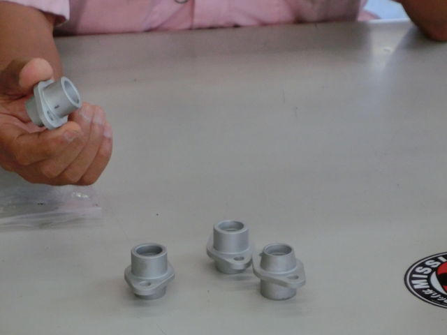 2個のベアリングを加工して組んでぶれない軸を作ることで漏れを防止します。