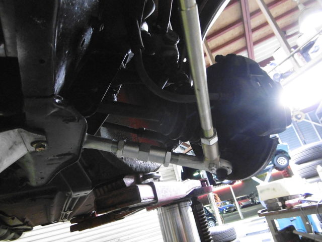 標準的な車高の場合、テンションロッドとロアームはこのように外側のほうが下がってます。
