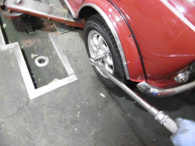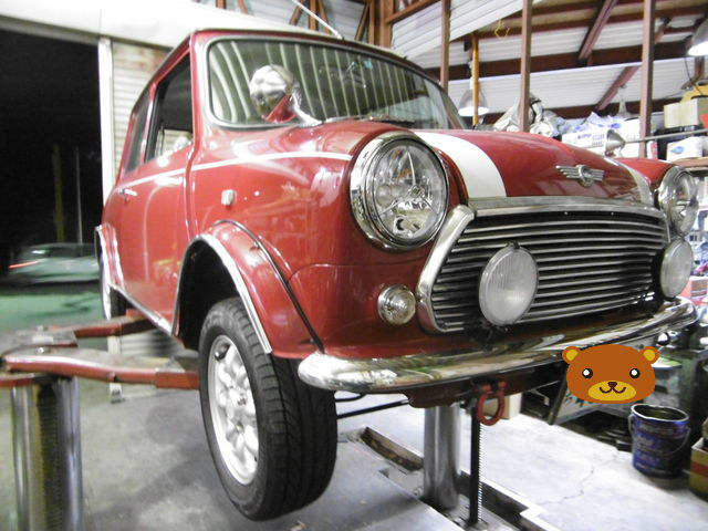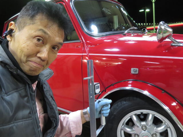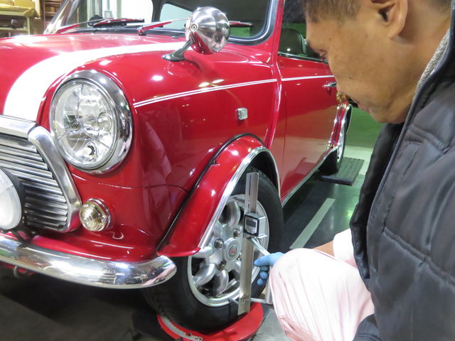 ミニの自重でサスが沈み込んだ状態で測ります。