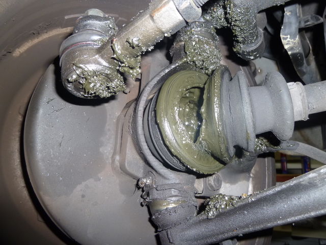 前回ヒビ割れのあったドライブシャフトブーツ、とうとう切れてしまいましたね。