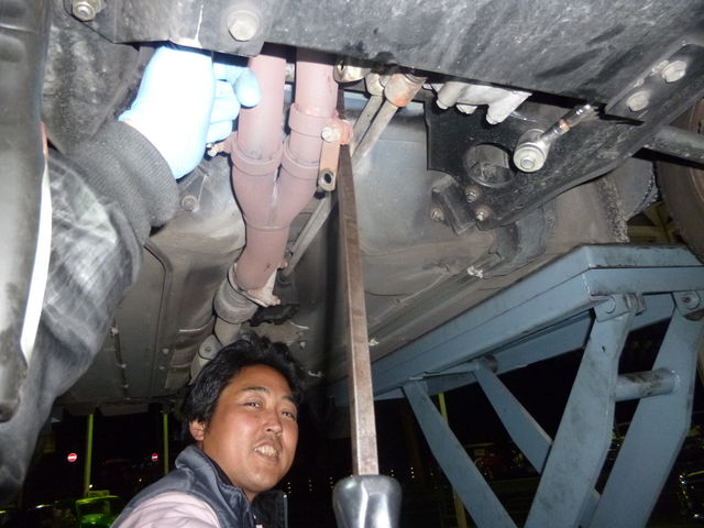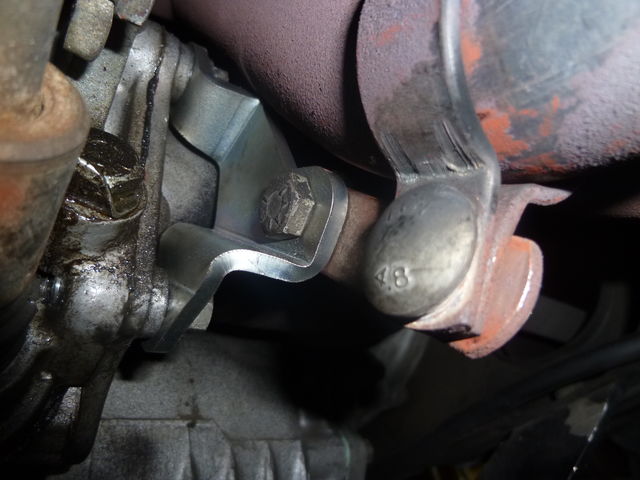 パッド、ローターの交換以外にも、ダウンパイプブラケットの交換もご用命。